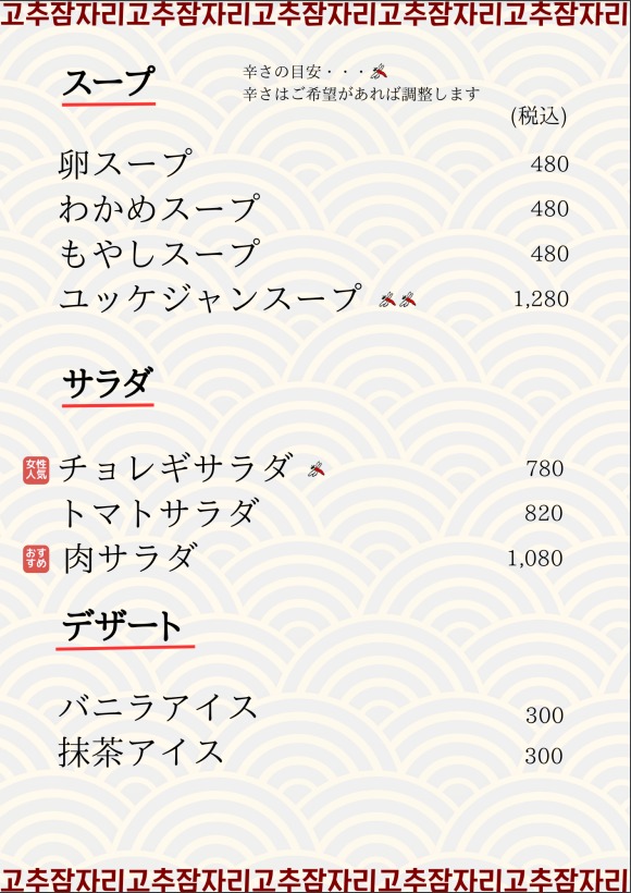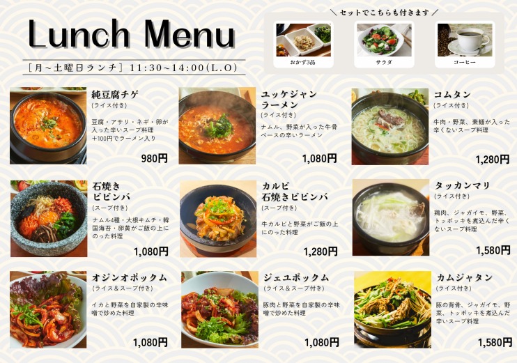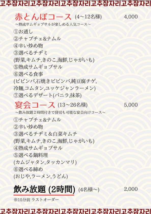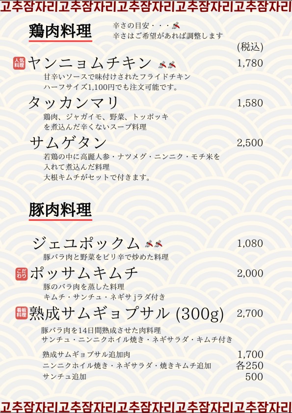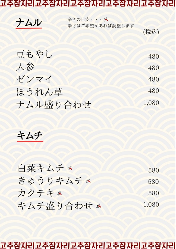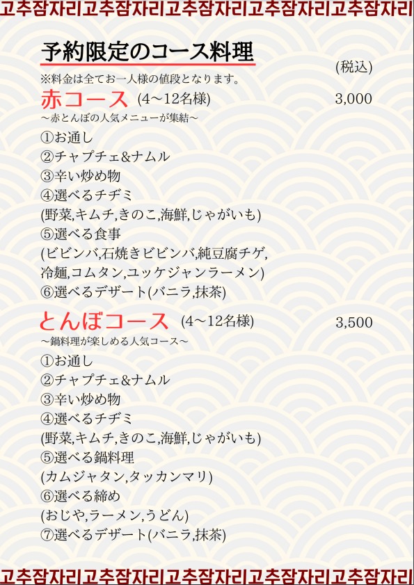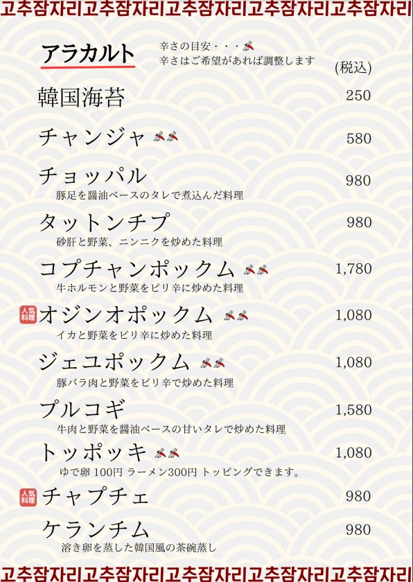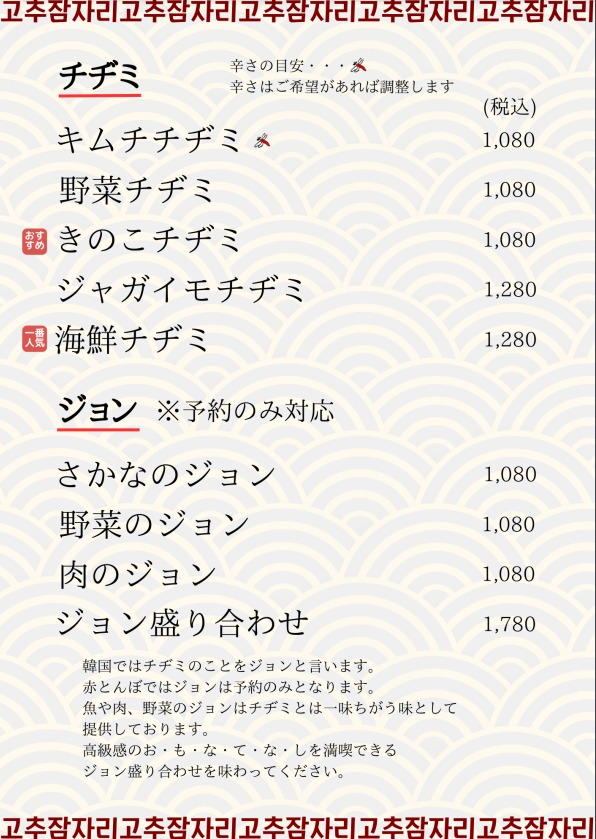 メニュー|赤とんぼ|本場韓国料理を提供するお店。韓国語と料理教室も開催しています